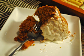 I decided to give this cake a "new" name, since I kind of made it wrong. Really, it's just a spice cake made with some Spring Woodchuck cider, but I decided to make it in a Bundt cake instead of a normal cakepan. However, when I did that, instead of flipping the cake properly out of the pan at the end (because I don't have a cake stand or an appropriate size pan), I left it in the pan and drizzled the glaze overtop, thus having it look more like a flower than anything. Thus, the bundt pan upside-down flower cake is what this turned into!